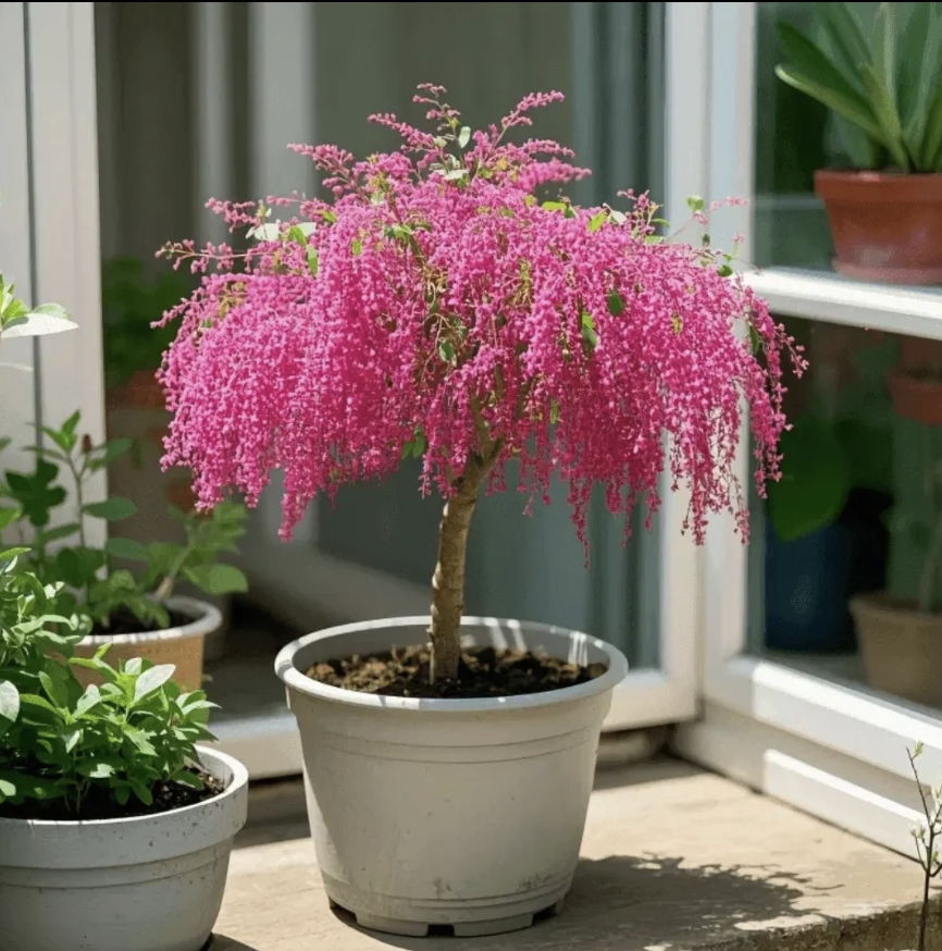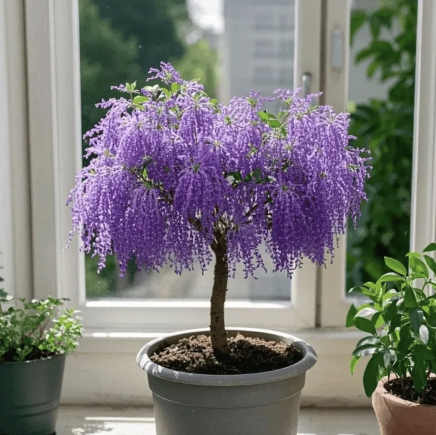 Під час цвітіння дерево вкривається ніжними квітами, що звисають вниз, немов квітковий водоспад. Його можна вирощувати як у ґрунті, так і в горщику на балконі чи вдома — воно легко створює вау-ефект.