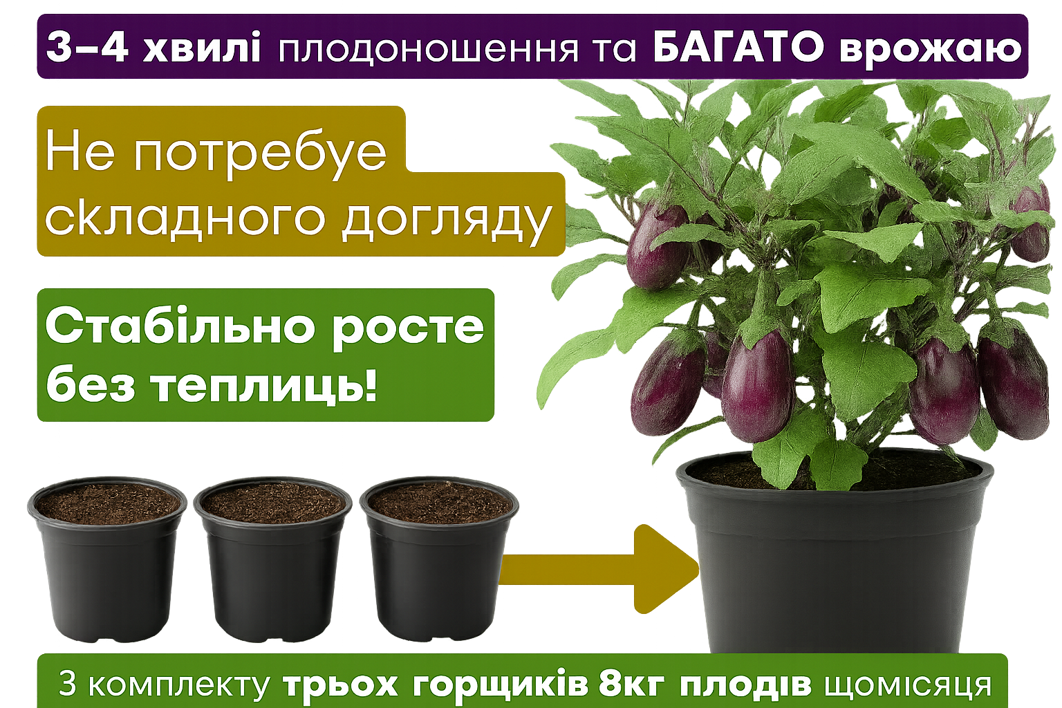 Вирощуйте на підвіконні чи балконі та збирайте фіолетові плоди вже через 21 день!
