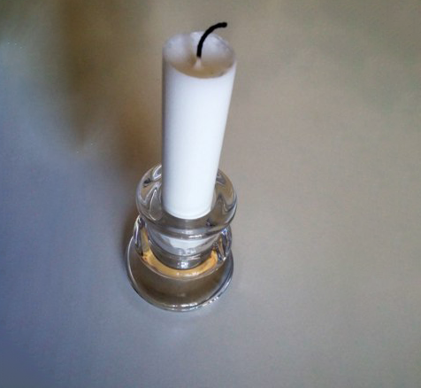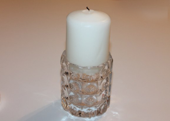 Помістіть свічку у високий стакан-підставку, в який переплавити віск після першого вигорання.