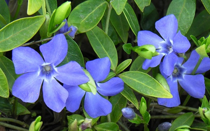 Трава барвінку містить алкалоїди, що допомагають знижувати артеріальний тиск, покращують мозковий кровообіг і мають заспокійливі властивості.