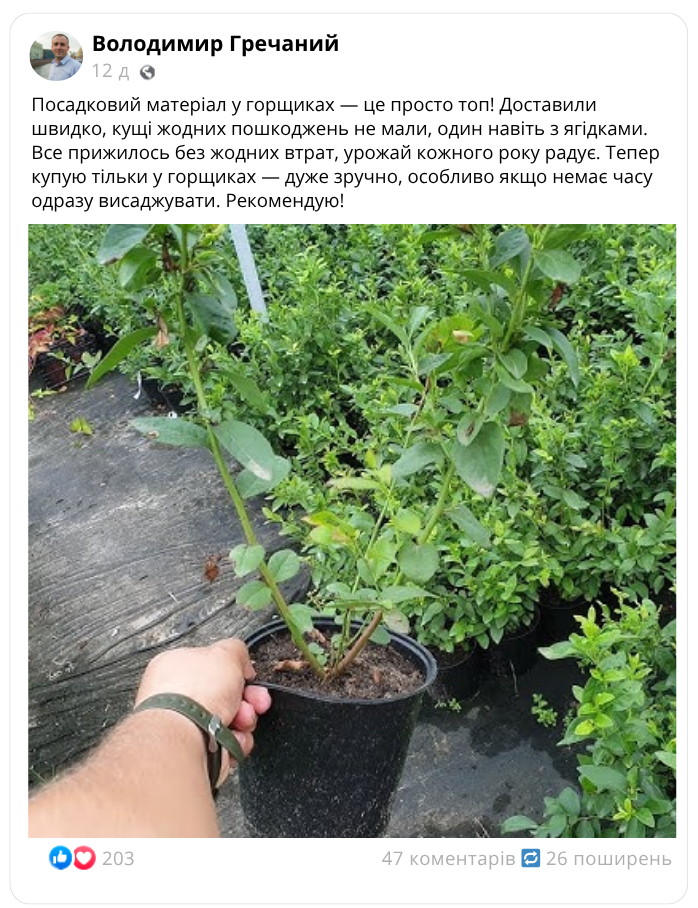 Саджанці лохини з закритою кореневою системою, які дивують врожайністю та смаком
